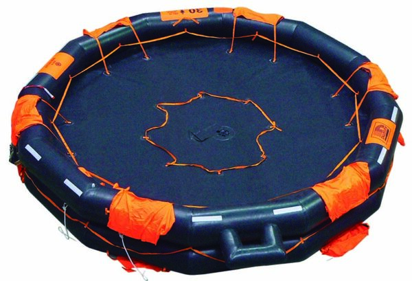 Balsa salvavidas Duarry reversible sin capota con equipo HSC.Duarry reversible liferaft without hood with HSC equipment.