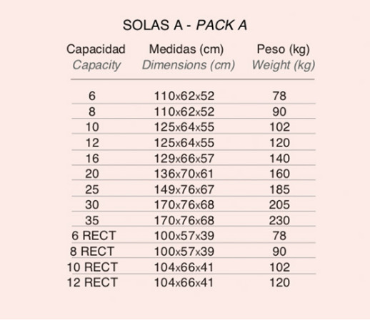 Disponible en 6, 8, 10 y 12 plazas. Contenedor cilíndrico o rectangular.