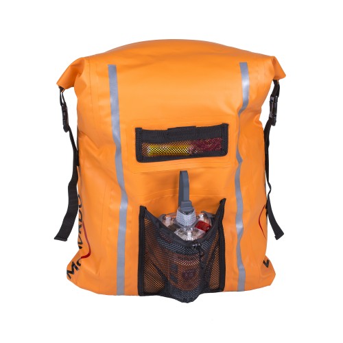 La mochila ideal para llevar consigo y guardar, a salvo del agua, sus más importantes pertenencias, además de un kit básico de supervivencia.