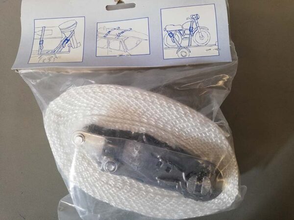 Cincha de sujeción de 5 metros de largo por 3,5 cm de ancho con carraca inox.Fastening strap 5 meters long 3.5 cm wide with stainless steel ratchet.