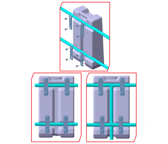 ● Drogue y las piezas de acero inoxidable para su colocación sobre rieles para botes.