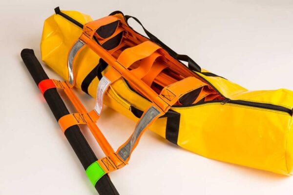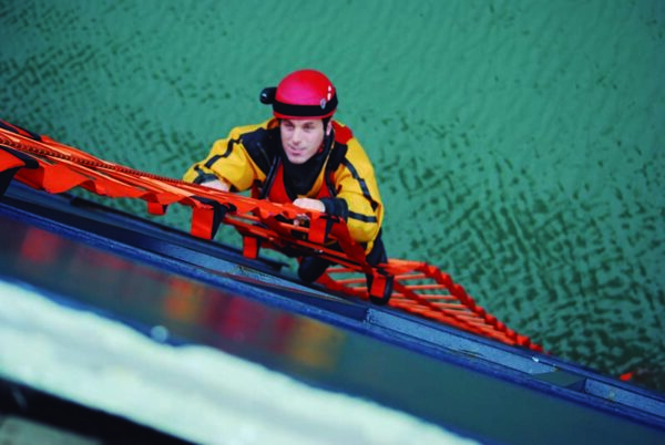 The ladder has a standard width of 600 mm and is produced in lengths from 2 to 30 meters, in orange or black. The ladder contains no metal parts and is therefore suitable for deployment on fire risk boats or platforms.