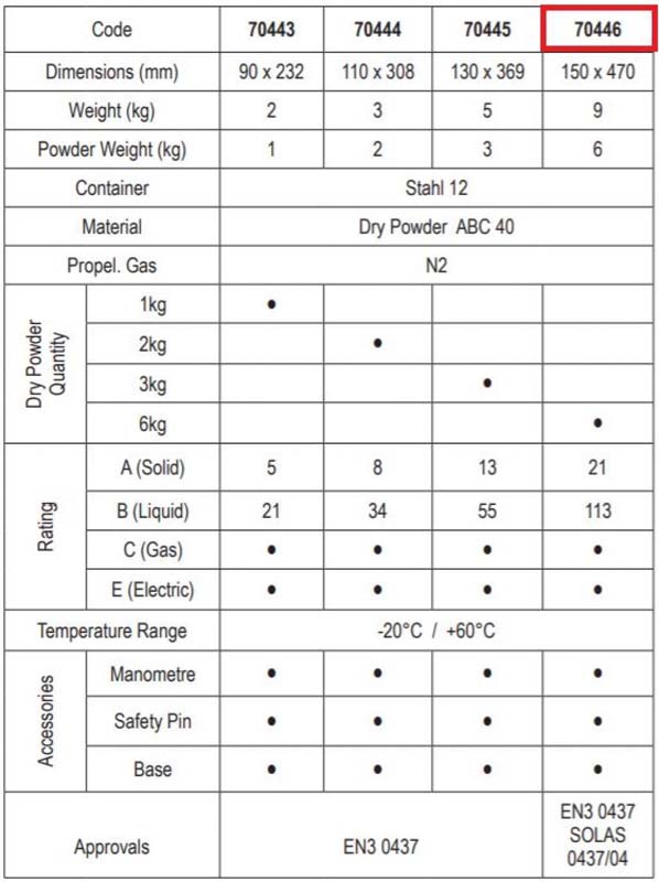 Extintor homologado marina 6 kg ABCMarine approved fire extinguisher 6 kg ABC