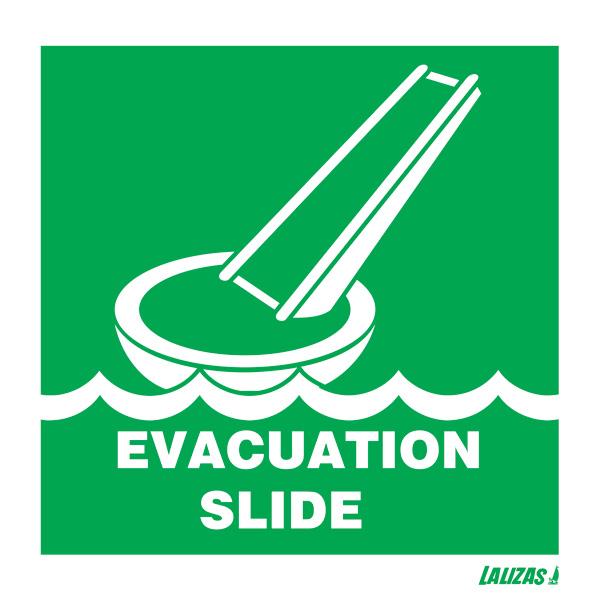 Señal IMO de  IMAGEN DE EVACUACION , foto luminiscente, vinilo adhesivo.