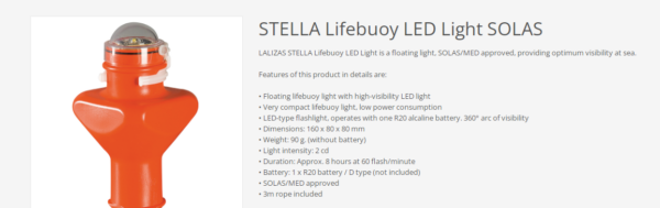 -Tecnología LED avanzada.Automatic flashing light designed to operate in extreme conditions. Watertight and with compact structure. Designed not to be manipulated and resistant to corrosion. Provides light for at least 2 hours. It is specifically designed to be highly resistant to accidental damage on board.