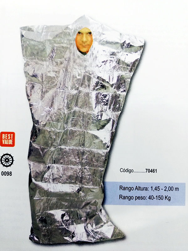 Manta térmica homologada SOLAS, con cremallera.