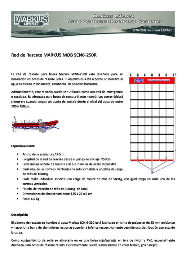 La red de rescate para botes Markus SCN6-250R está diseñada para su