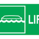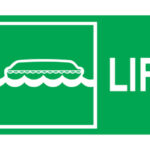 Señal IMO de DIRECCION BOTE RESCATE  foto luminiscente, vinilo adhesivo.