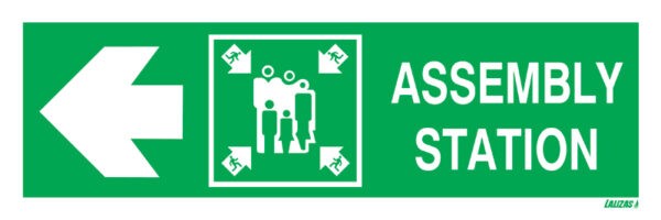 Señal IMO de DIRECCION PUNTO DE REUNION foto luminiscente, vinilo adhesivo.