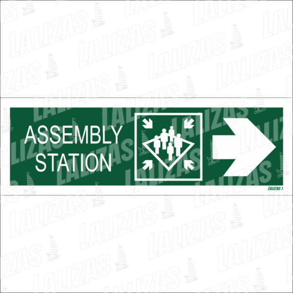 Señal IMO de DIRECCION PUNTO DE REUNION  foto luminiscente, vinilo adhesivo.