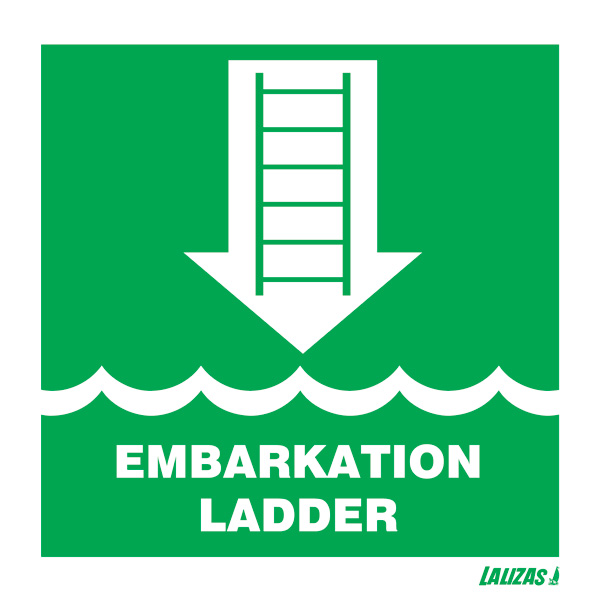 Señal IMO de ESCALERA DE EMBARQUE , foto luminiscente, vinilo adhesivo.
