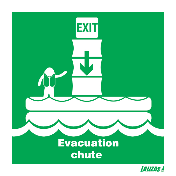 Medidas 15 x 15 cmIMO EVACUATION CHUTE EXIT sign luminescent photo, adhesive vinyl.