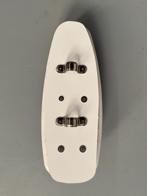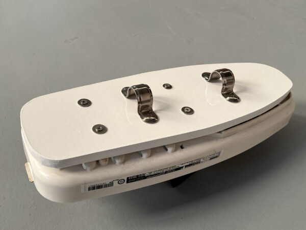 Soporte de madera marina lacado en color blanco para radiobalizas automáticas con carcasa exterior, como el modelo GME / KANNAD/MC MURDO/ACR .