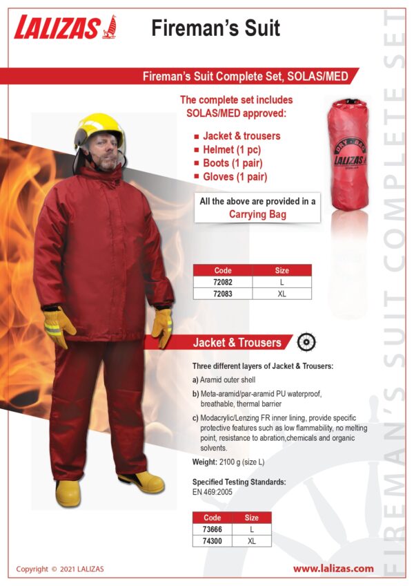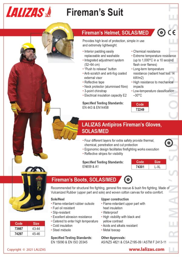 TRAJE Equipos Contraincendios> Accesorio de bomberos COMPLETO SOLAS/MED