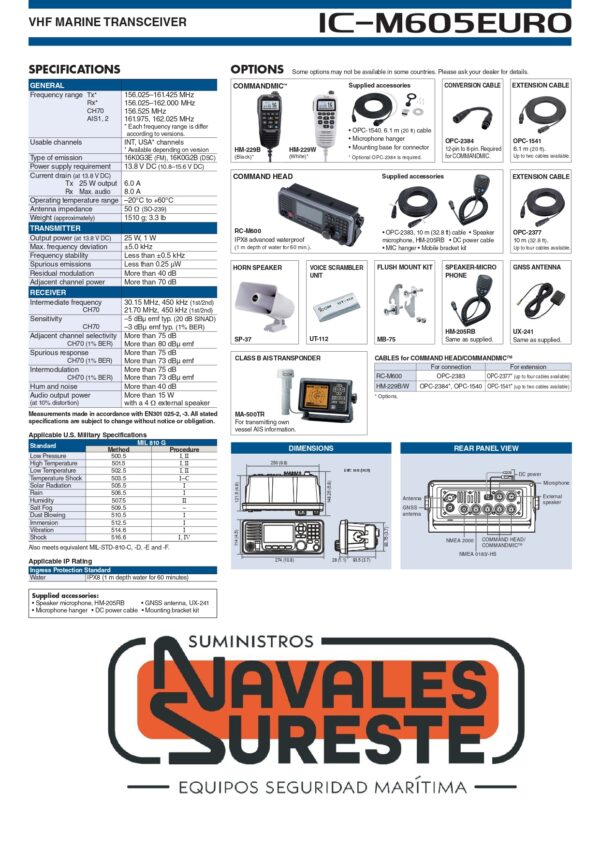 VHF FIJO MARINA ICOM IC-M605EURO AIS