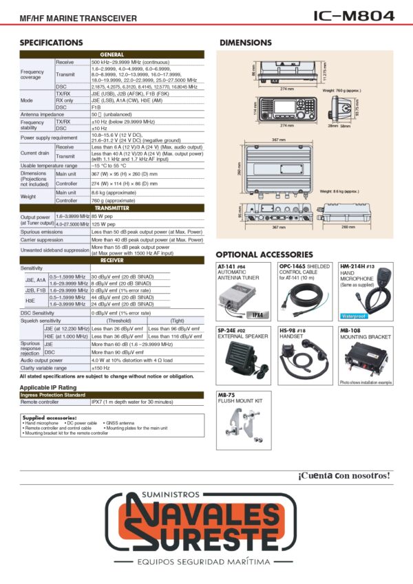 VHF FIJO MARINA ICOM IC-M804 GPS