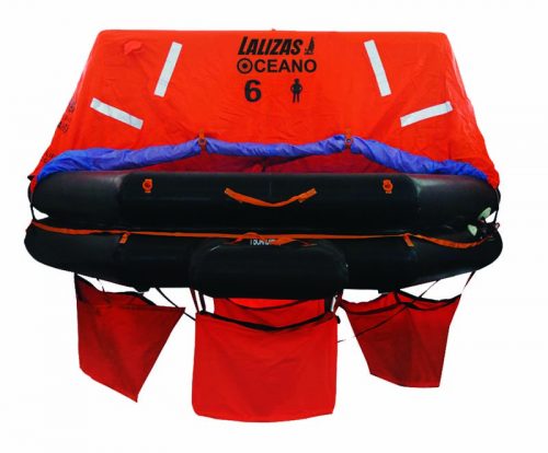 Balsa salvavidas Lalizas Solas en contenedor cilíndrico (6, 8, 10 y 12 plazas) y contenedor rectangular (8 y 12 plazas), homologadas SOLAS/MED (Maritime Equipment Directive 96/98/EC ultimas enmiendas). Certificado como artículos A.1/1.12 Balsas Salvavidas y testados conforme a las normas aplicables, tal como menciona en la directiva MED, i.e. SOLAS 74. Fabricada en tejido duradero de goma natural, flotadores de doble camara con válvulas de seguridad y suelo aislante para condiciones de baja temperatura. Totalmente operativa a temperaturas desde -300º hasta + 650º. Extensa red de más de 200 estaciones de servicio en todo el mundo.