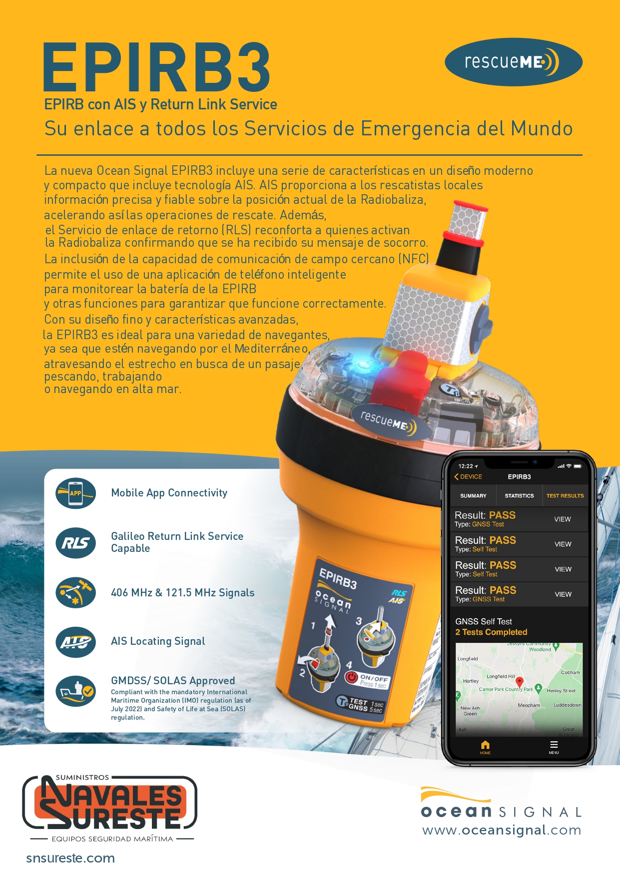 y compacto que incluye tecnología AIS. AIS proporciona a los rescatistas locales