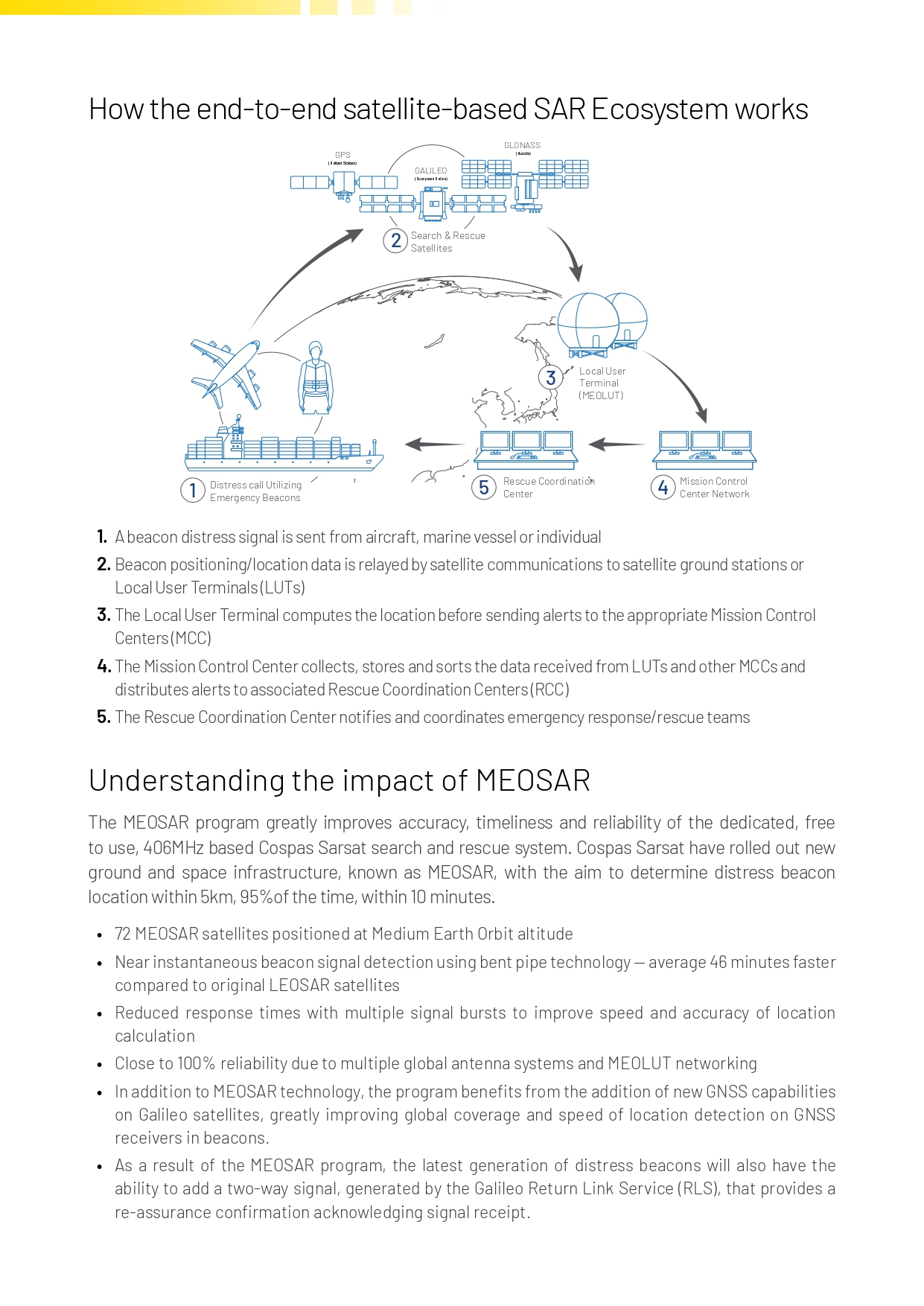 Radiobaliza personal muy compacta, estanca hasta 10 metros de profundidad, mínimo 24 h. de operación continua, GPS integrado de 50 canales, 6 años de caducidad de la batería.